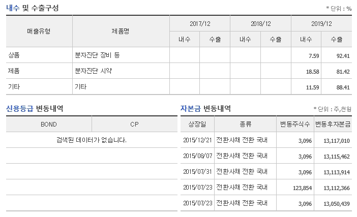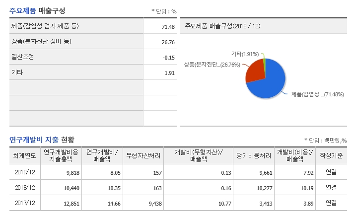 그리고 분자 진단시약 매출이 상당한 비율을 차지 하고 있다,