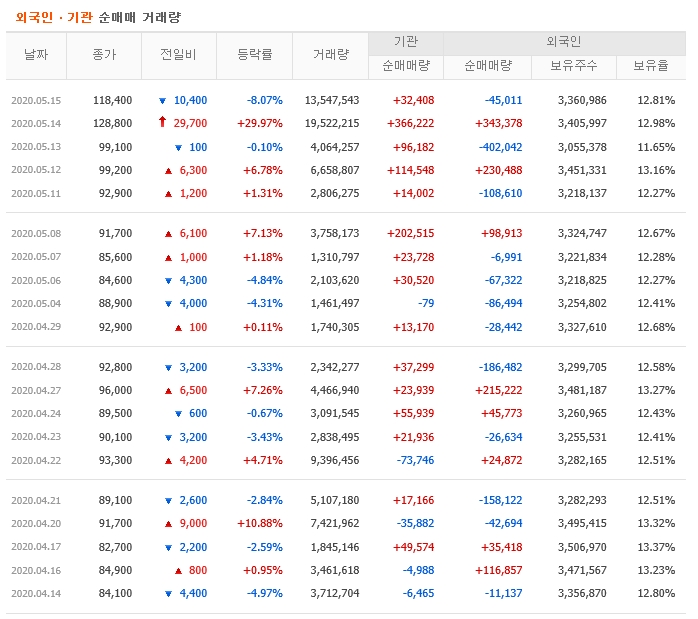 주가상승세는 좋지만 기관과 외국인의 매수와 매도세를