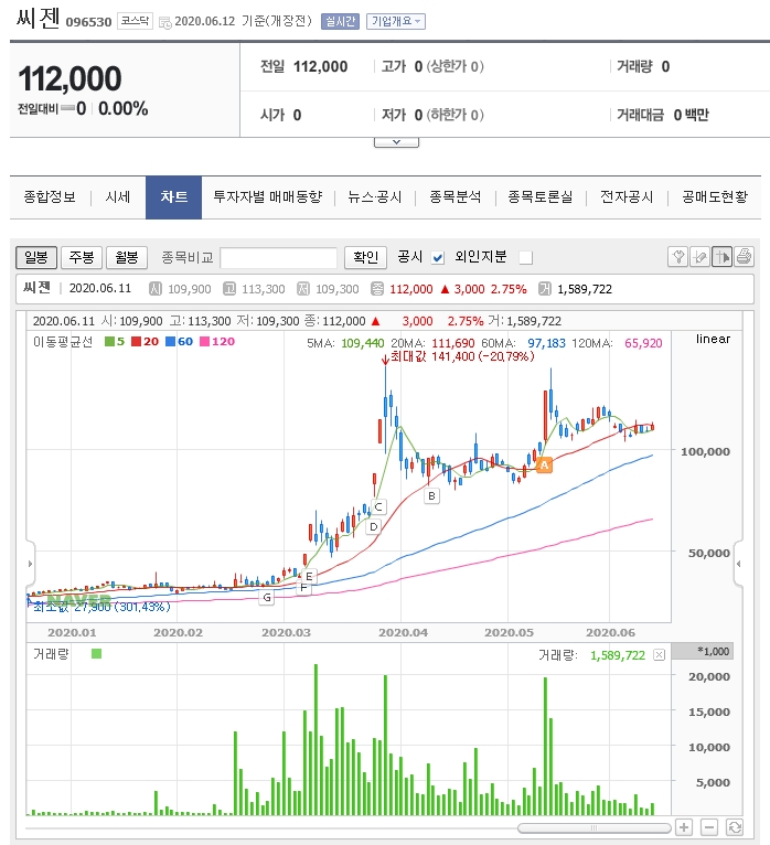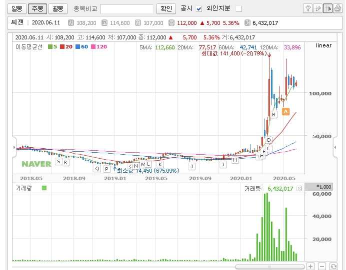 3월달부터 서서히 씨젠의 주가상승이 시작되고