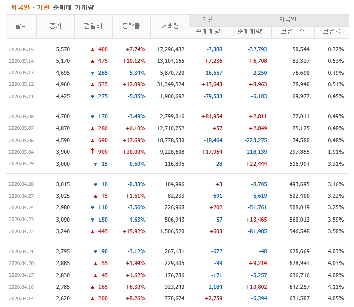 3월말 부터 지금까지 상승세를 유지하고 있어서