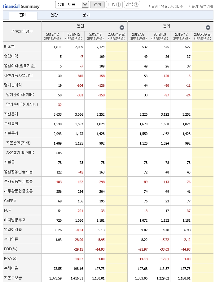재무 상태는 그렇게 좋지 못하지만 큰 손해를 보고 있는