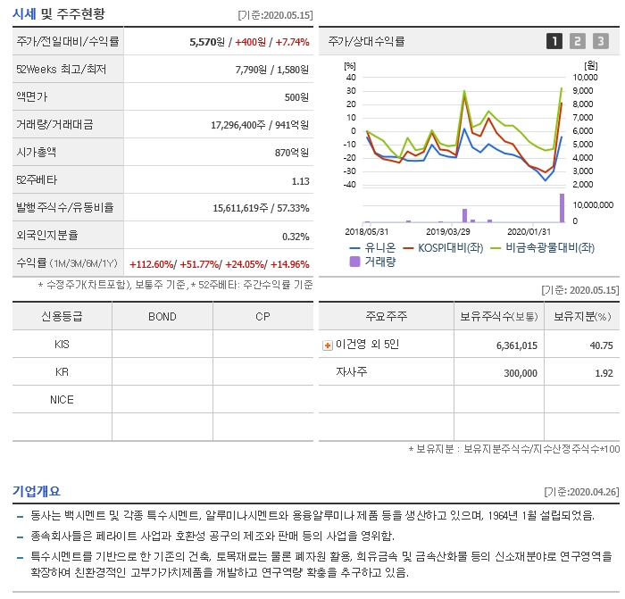 또한 알루미나 시멘트로 상당한 매출을 내는 기업이다.