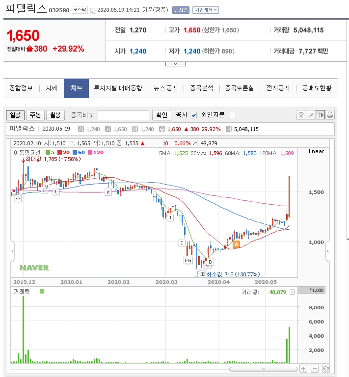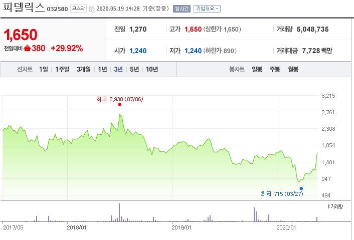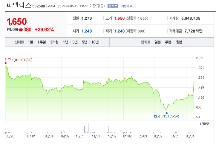 오늘은 피델릭스가 상한가를 치고 있다.