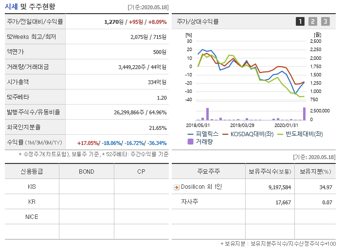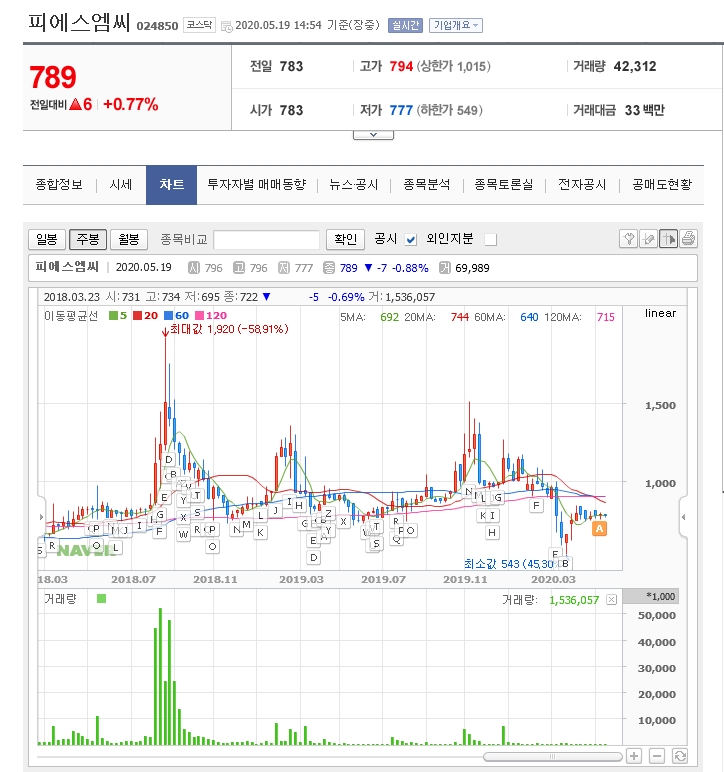 피에스엠씨의 주가 흐름과는 다른 방향으로 진행을