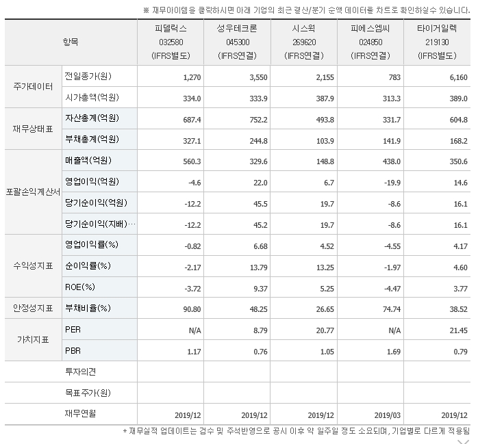 국내 반도체 업종의 성우테크론, 시스웍,타이거일렉,