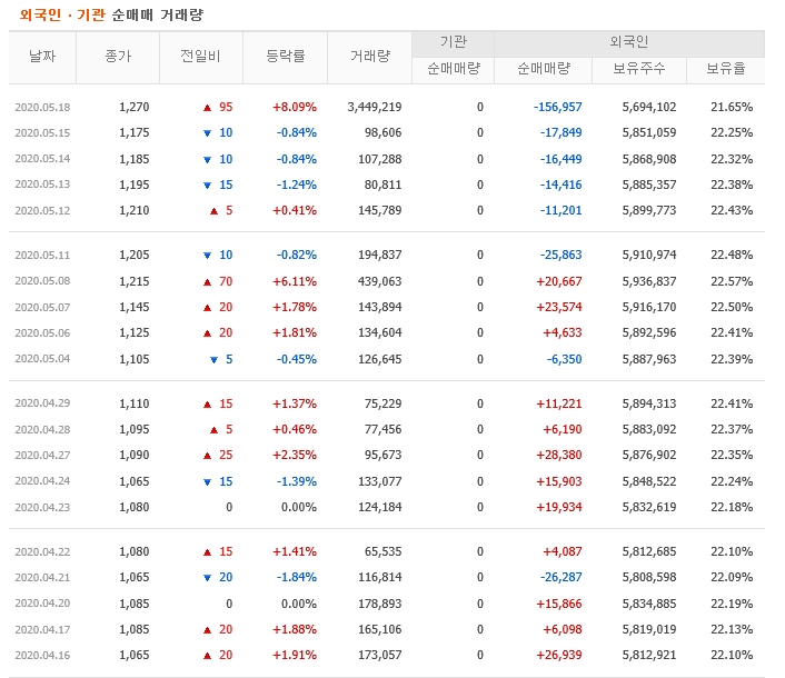 이 업체의 특징중에 하나는 외국인 지분률이 상당히 높은 기업으로