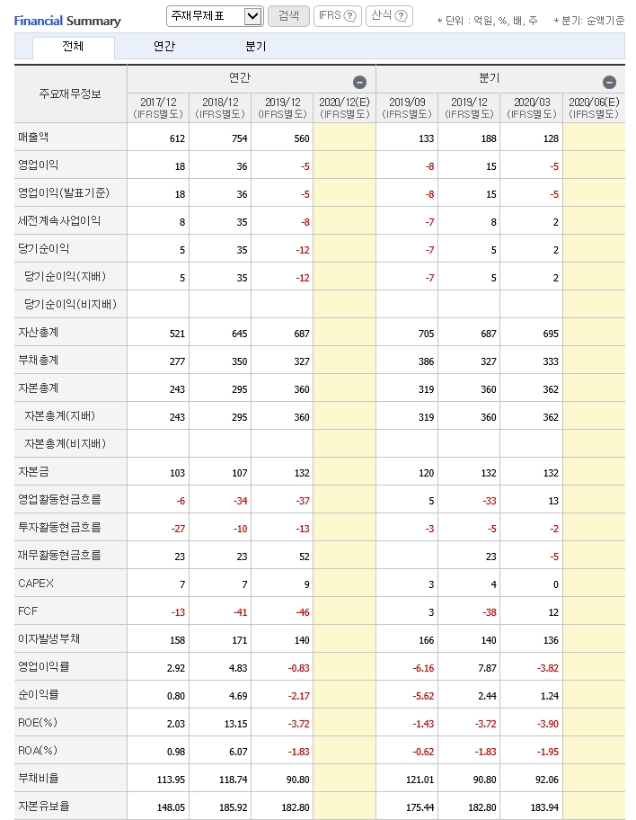 이 업체는 그동안 적자전환이 된 기업으로